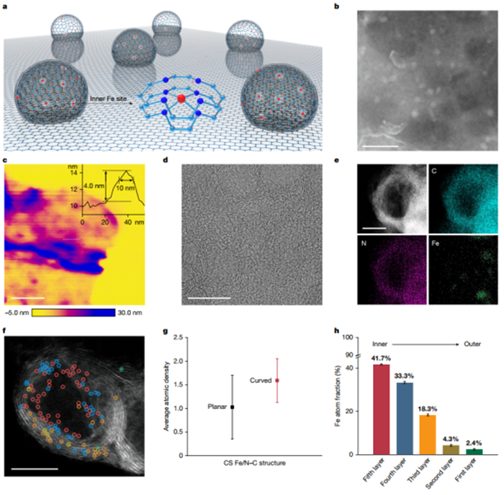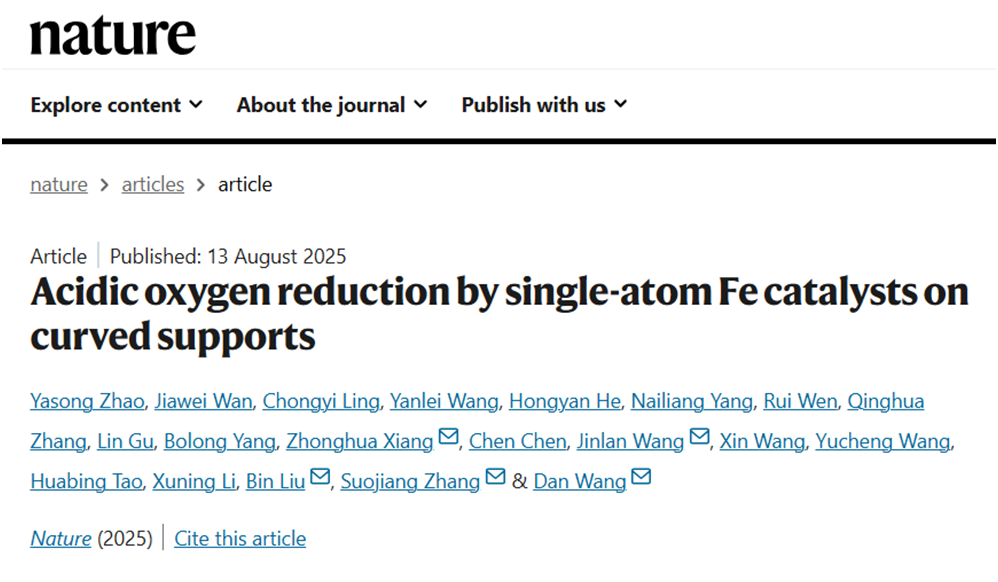 同样来自深圳大学化学与环境工程学院的王丹特聘教授团队,近日也发布重磅成果:铁基纳米HoMS突破非贵H2-02燃料电池性能天花板。相关成果以“Acidic oxygen reduction by single-atom Fe catalysts on curved supports”为题发表于Nature。论文通讯作者是王丹教授、向中华教授、王金兰教授、刘彬教授、张锁江院士。第一作者是赵亚松博士。