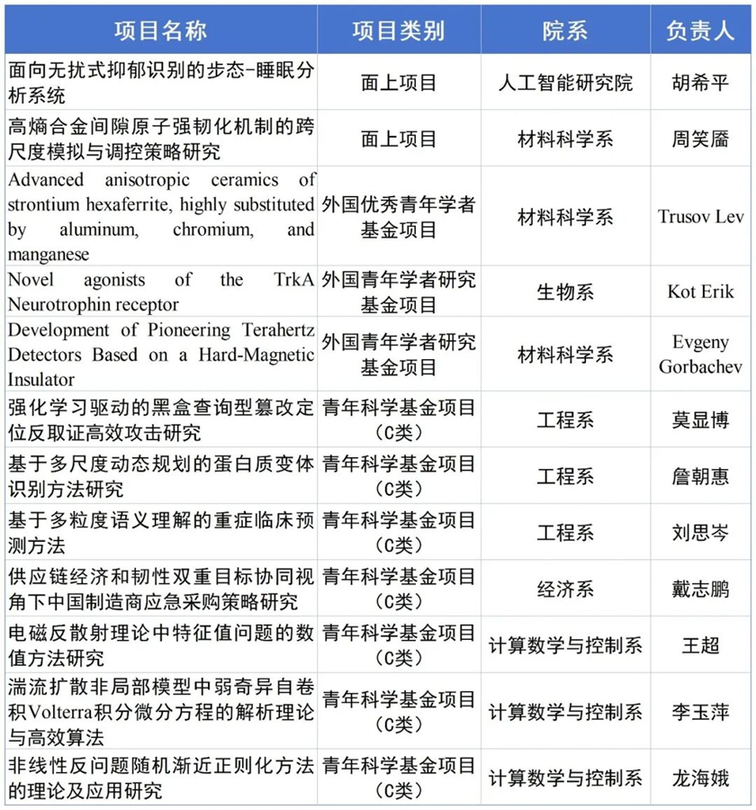 深北莫获2025年国家自然科学基金项目立项情况