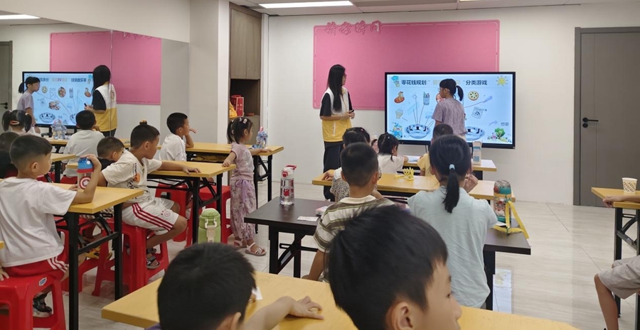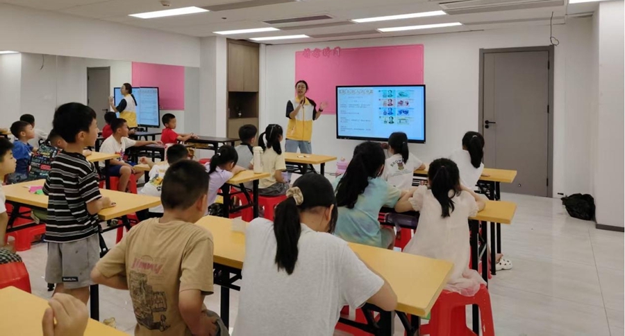 第三堂课聚焦财商实践,围绕“认识货币”“买卖概念”“模拟市场”和“风险预演”四大模块开展。队员结合生活情境讲解定价等概念,并通过互动环节帮助孩子辨别“需要”与“想要”。随后,在“校园小掌柜大挑战”活动,孩子们化身小掌柜和顾客,每人持有50枚“阳光币”作为启动资金,进行文具、小礼物等商品的买卖实践。在多轮的定价、推销、交易的实战中,“小掌柜”学会计算成本与收益,“顾客”则体验预算与消费的权衡,孩子们在沉浸式的游戏中逐步建立起经营意识和理性消费的观念。