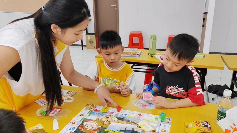 收官课程以“超级大富翁”为载体,介绍游戏规则及资产、租金、风险等核心概念,沉浸式体验财商博弈。孩子们以“小企业家”身份参与游戏,在投掷骰子、抽取卡牌、计算租金的过程中不断做出“是否购地”“建房还是储蓄”“如何应对风险”等决策。有的孩子采取谨慎策略稳步积累财富,也有孩子勇敢投资体验市场波动,在游戏中深化财经规划与风险管理能力。