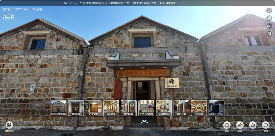 “澄邑兴绘,知行实践团”服务队走进汕头市澄海区隆都镇后沟村,为地瓦窑文化展馆构建虚拟线上展厅。实践团成员利用高清摄影、三维建模等技术,成功构建了一个可互动浏览的虚拟展厅。他们将这片充满历史温度的文化空间搬到互联网上,观众只需通过电脑或手机,就能“走”进展馆,自由切换视角,查看展品的细节。通过打破时空壁垒,为文化展馆插上了飞向世界的翅膀,让更多人触手可及。团队成员还以瓦片纹样、砖雕元素为灵感,AIGC赋能开展系列周边文创产品设计,设计中巧妙融入了传统元素与现代简洁风格,使得古老的瓦窑文化更易被年轻群体接受与喜爱。实践团成员表示,未来将持续优化线上展厅体验,并推动文创产品落地,让瓦窑文化焕发新的生命力。