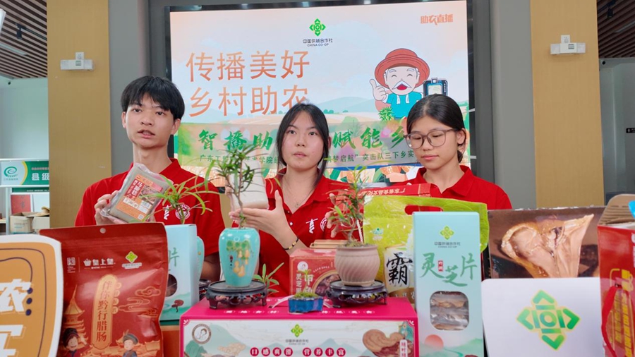 “携梦启航”突击队在白云区钟落潭镇新村村,深入罗汉松生产基地一线,将电商专业知识转化为助农实效。他们运用新媒体营销技能,在“白云农夫市集”平台开展多场高互动直播,生动推广罗汉松盆栽、洲星马蹄糕、乳鸽、灵芝片等名优产品。队员们围绕产品特性、文化背景、实用场景等进行生动讲解,巧妙运用AI工具深度分析直播数据,精准把握市场动态与消费者需求,创新策划“云赏罗汉松”主题专场,通过盆景艺术展示与种养知识科普,让乡村农产品在数字平台上变得更吸引人。在近400分钟的直播中,累计吸引观众2015人,点赞量达到5万多次,有效提升了农产品曝光度和市场竞争力。