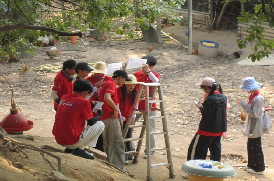 “青春粤动”服务队走进清远麻鸡养殖场,他们敏锐捕捉电商机遇,深入调研后即兴开展直播活动,搭建了“田头到云端”的产销渠道。他们穿梭在架空鸡舍间捡拾鸡蛋,同时向网友展示林间散养的生态养殖模式。“家人们看过来,这就是石岐村的麻鸡,吃的是玉米粒,喝的是山泉水!” 一场即兴直播,让乡土农产品搭上了电商快车,也让队员们真切体会到“青春力量能为传统农业注入新活力”。