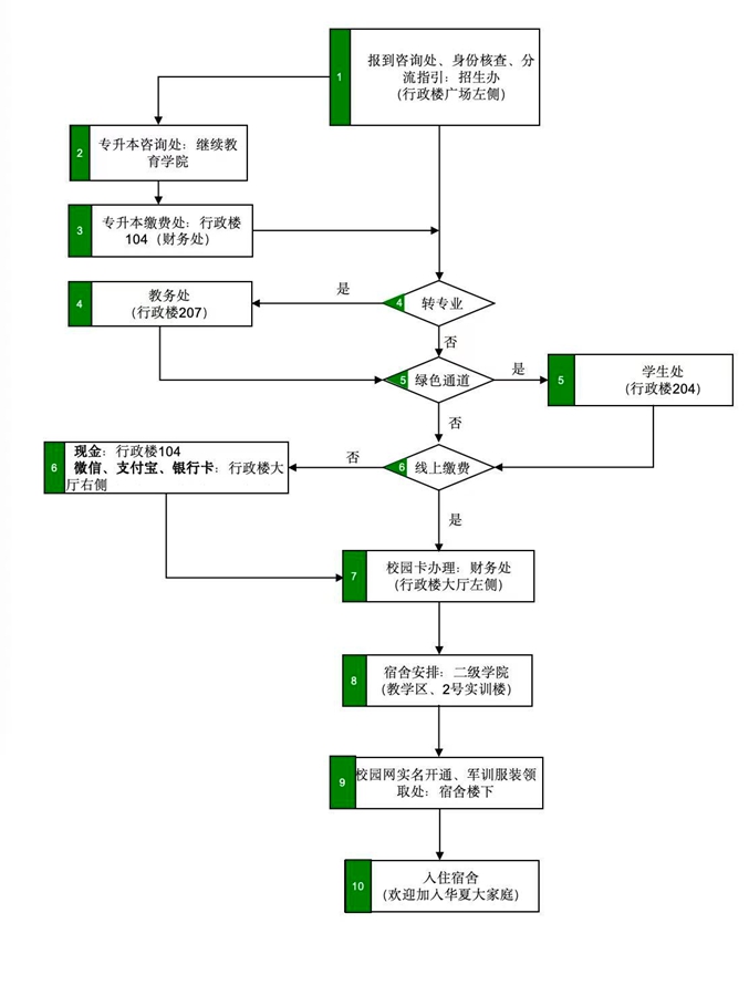 1.报到咨询处、身份核查、分流指引(招生办):行政楼广场左侧