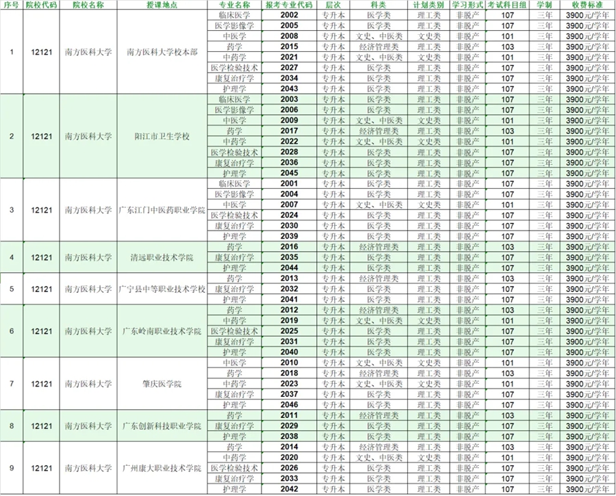 快看!2025年南方医科大学成人高考报考专业代码来了