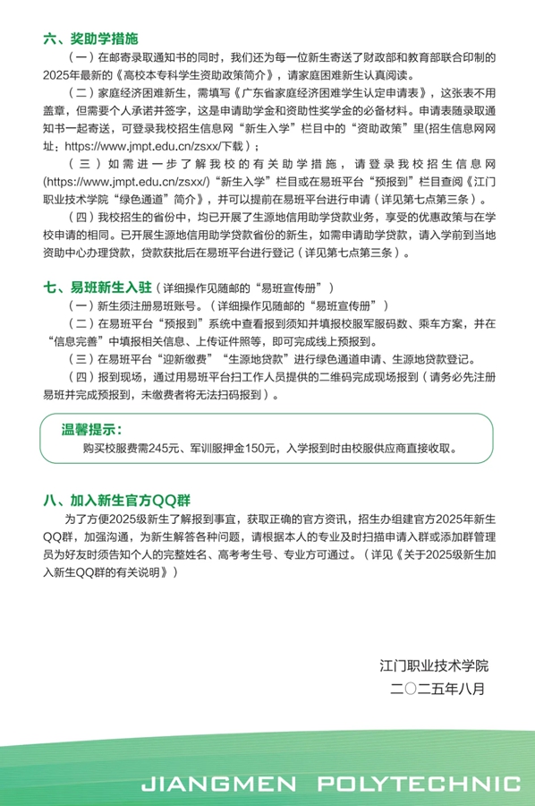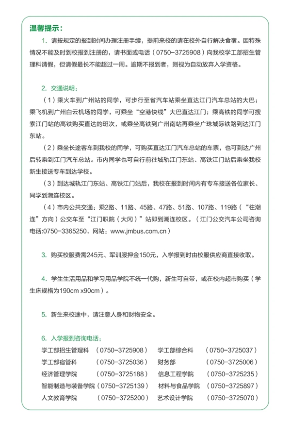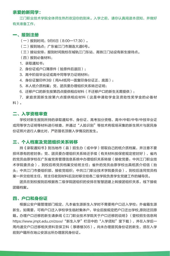 江门职业技术学院2025新生入学报到指南