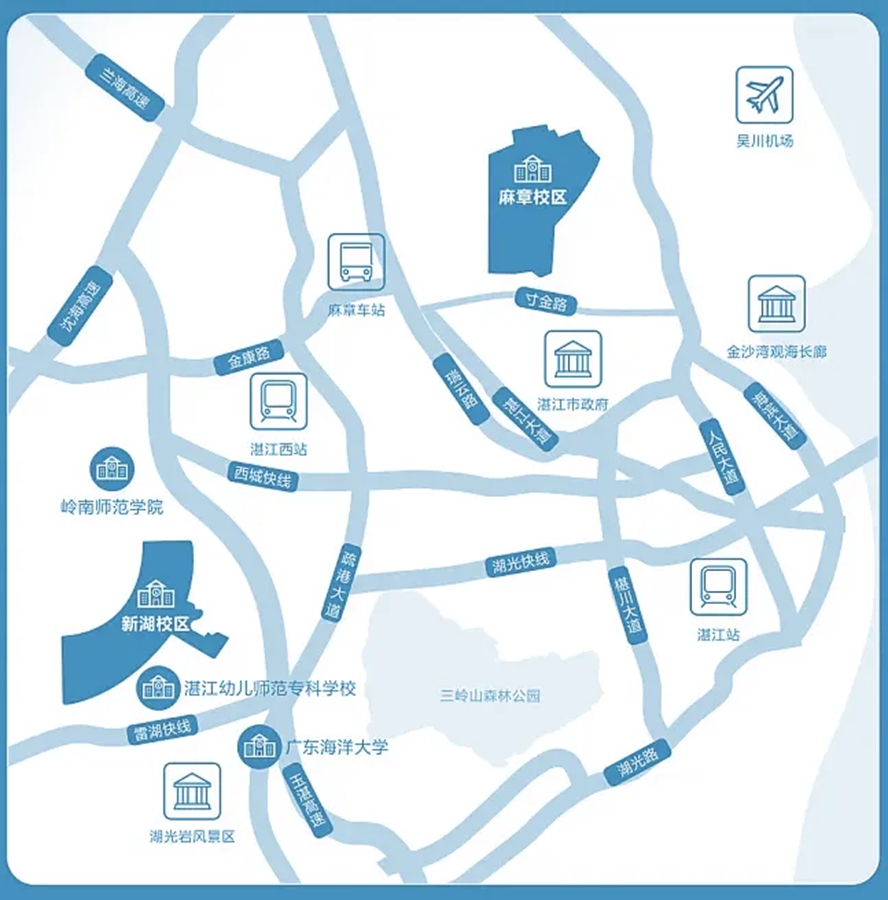 新湖校区地址:广东省湛江市麻章区湖光镇教育城新坡路1号