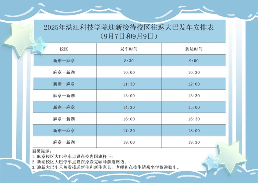 普高新生:请于2025年9月9日凭《湛江科技学院录取通知书》和本人身份证来校报到。