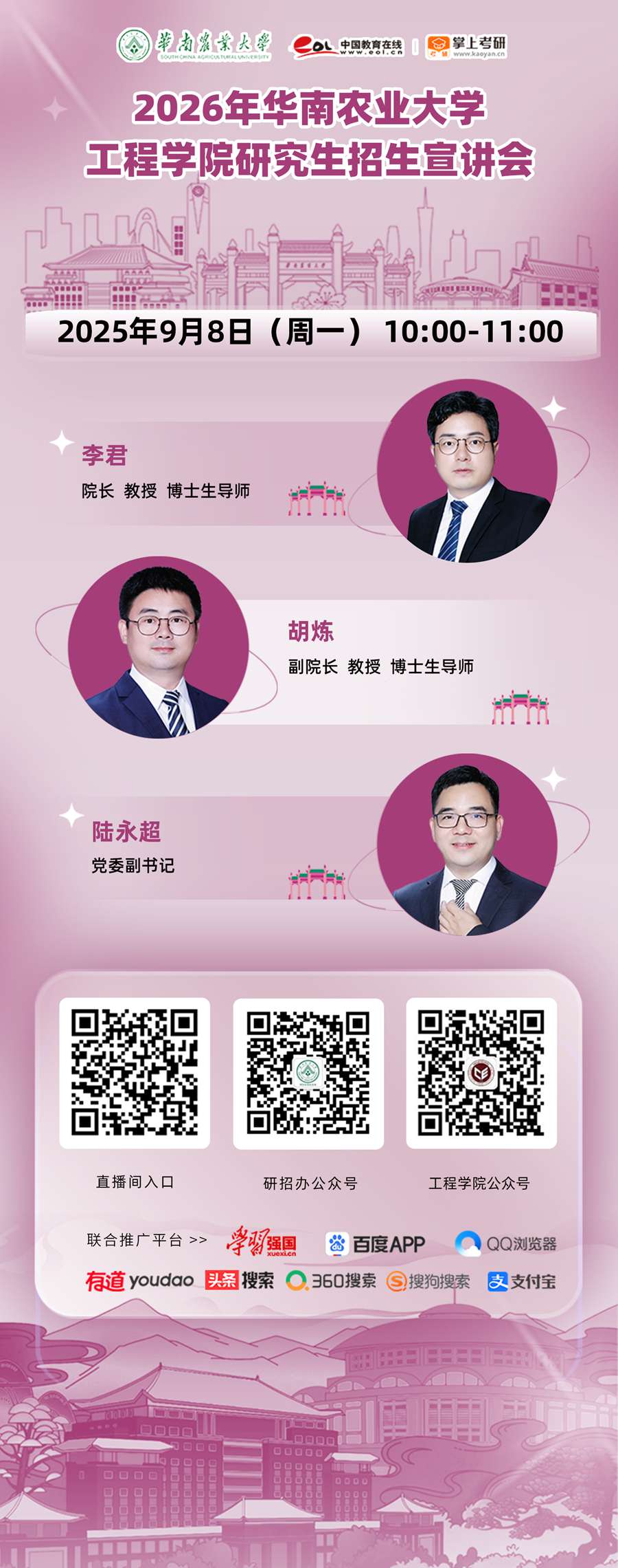 9月8日,2026年华南农业大学工程学院研究生招生宣讲会约定你