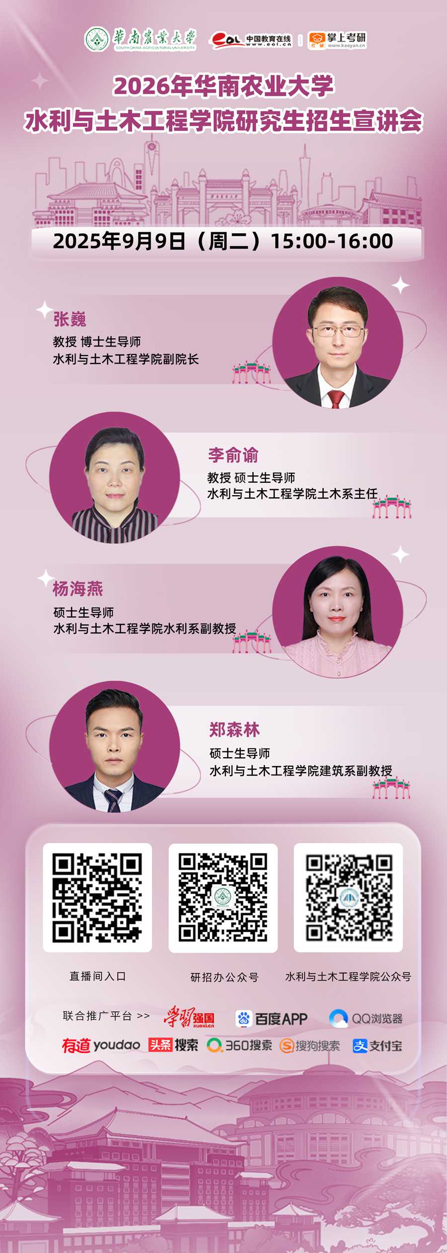 9月9日,2026年华南农业大学水利与土木工程学院研究生招生宣讲会约定你