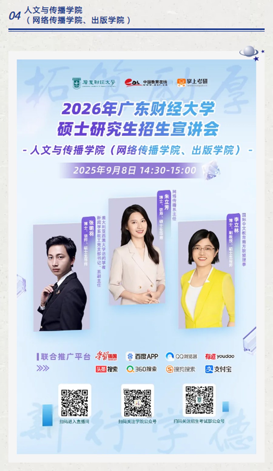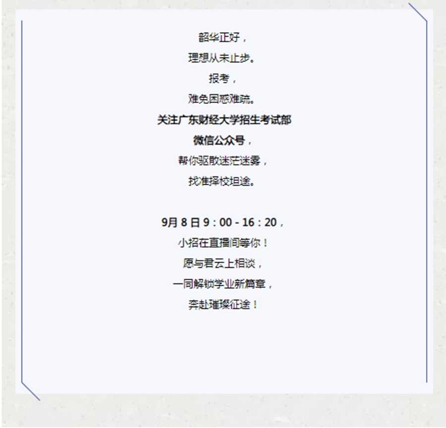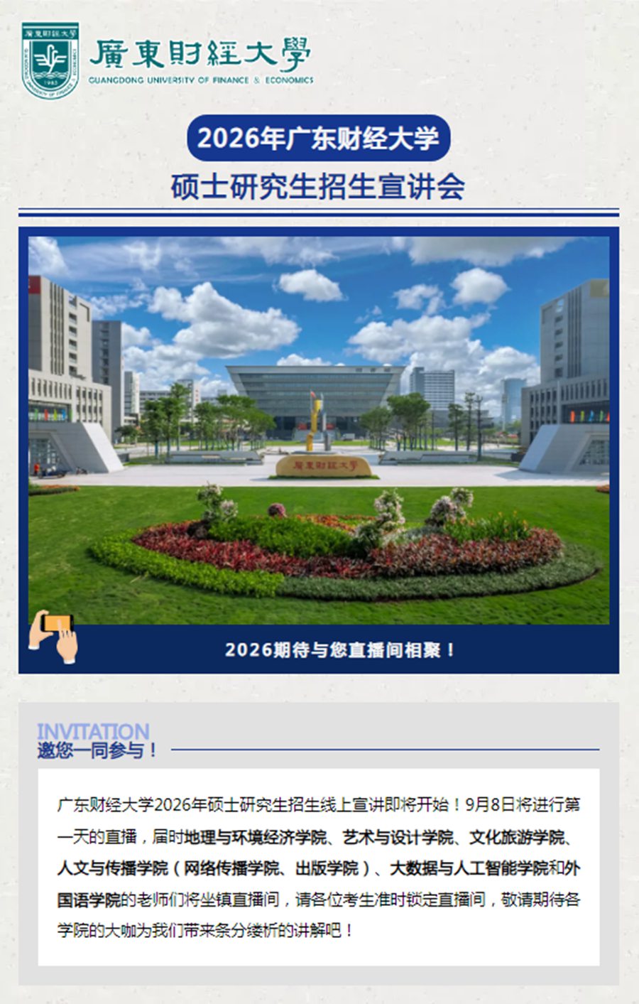 直播预告 | 广东财经大学硕士研究生招生线上宣讲会——9月8日(星期一)