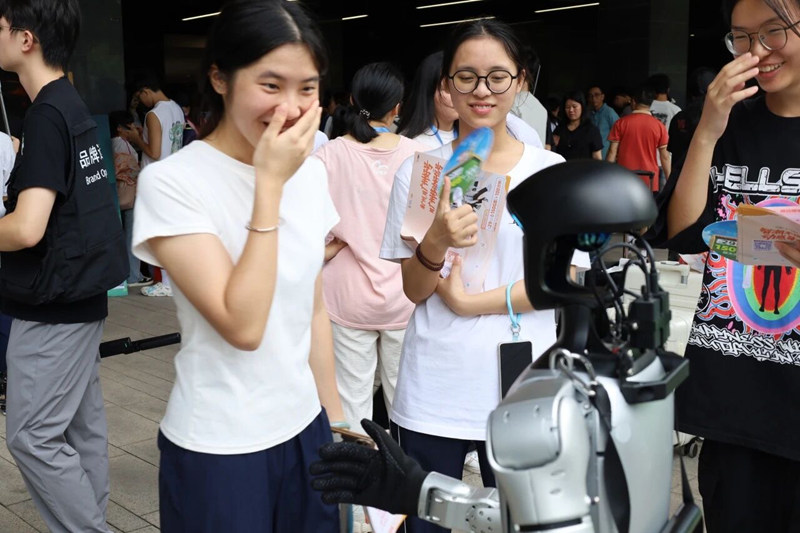 与往年不同的是,今年的迎新现场多了一群“特殊的工作人员”——身形灵动、科技酷炫的智能具身机器人,它们穿梭在人群中,与新生、家长热情互动,让整个报到过程科技感十足,成为校园里一道亮眼的风景线。