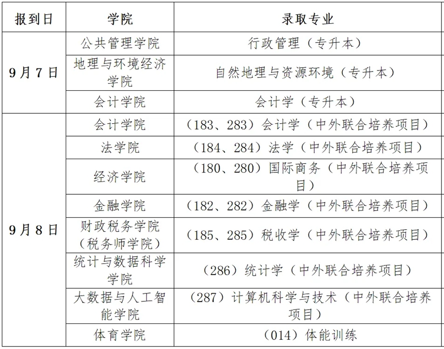 其他专业报到时间:9月8日-9日(星期一、星期二)