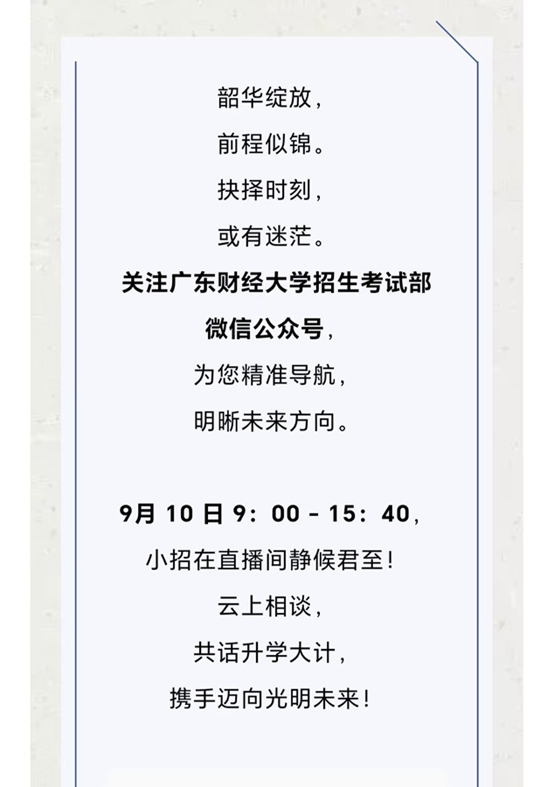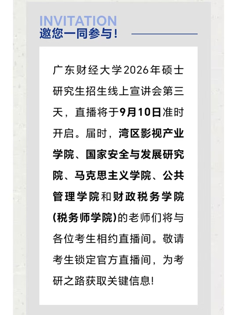 直播预告 | 广东财经大学硕士研究生招生线上宣讲会——9月10日(星期三)