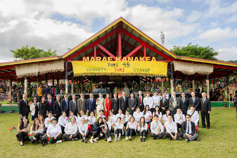 北师香港浸会大学(BNBU)学生罗凯宁(右二)在瓦努阿图