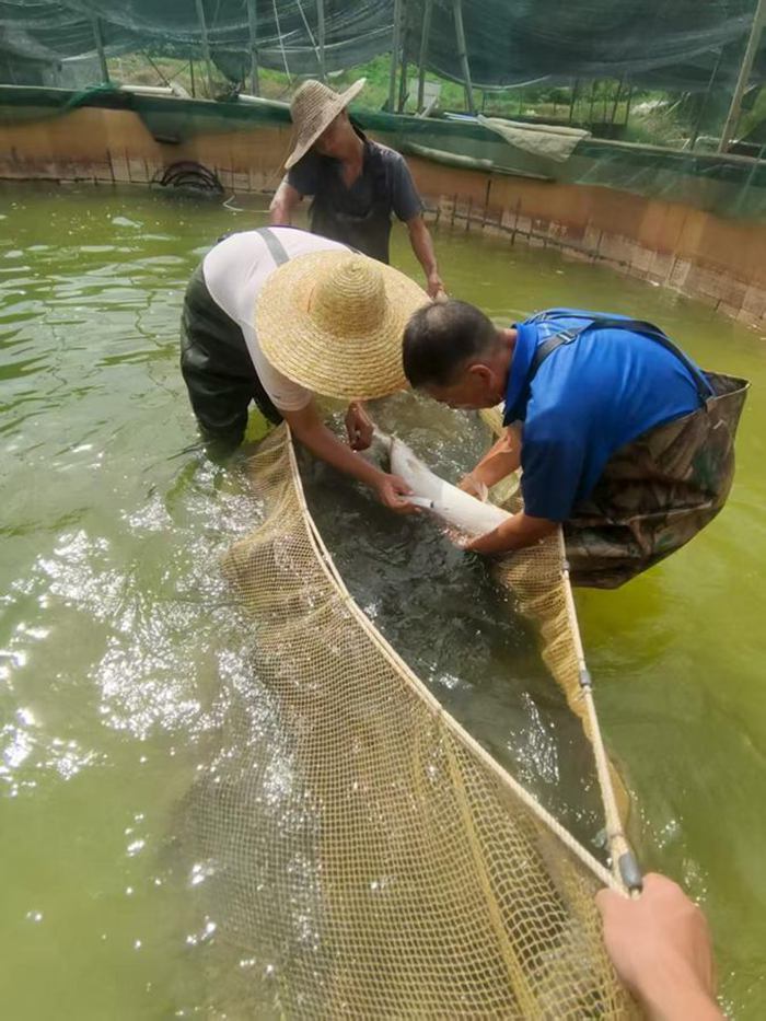 台风 “韦帕” 过境的清晨,佛山高明更合镇歌乐村的盛鳜渔业有限公司渔场里,风雨裹挟着泥水肆虐。然而,广东生态工程职业学院 “爱渔说 —— 高明渔业特色实践队” 的队员陈金均却丝毫没有退缩,毅然跟随渔场工人一起蹚进齐腰深的鱼塘。他们深知,持续高温已导致部分亲鱼性腺提前萎缩,而台风带来的短时降温,正是人工催产的 “黄金窗口”—— 抢捞下今年夏天最后一批可催产的亲鱼,是眼下最紧迫的任务。