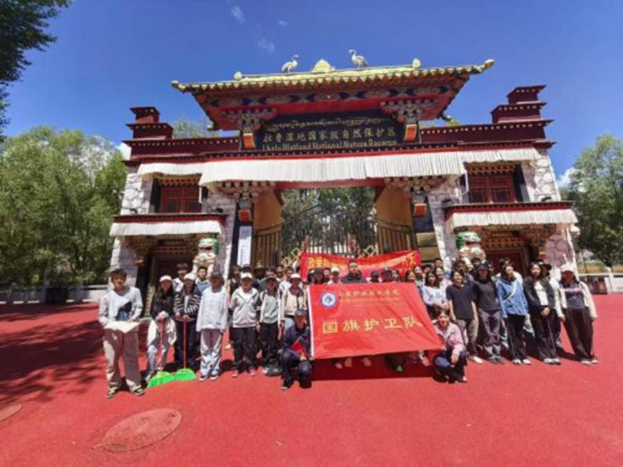 为践行生态文明理念,展现国旗护卫队队员担当,西藏职业技术学院国旗护卫队于2025年9月6日在拉鲁湿地国家级自然保护区开展“逐光拉鲁 徒步共生”湿地健走环保盛典活动,其中国旗护卫队队员及校学生会志愿者师生共70余人参加该活动。