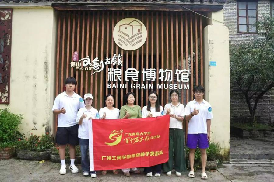 广州工商学院希望种子突击队赴粮食博物馆拍摄采访合照