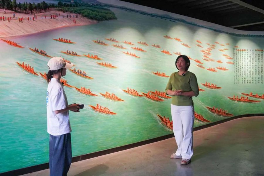 白坭镇素有“五人龙舟之乡”之称,拥有“广东省五人龙舟特色镇”称号。在龙舟博物馆内,谭君特别介绍了白坭金竹村人陆永良的事迹。“五人龙舟”象征着白坭人努力拼搏、力争上游的精神。