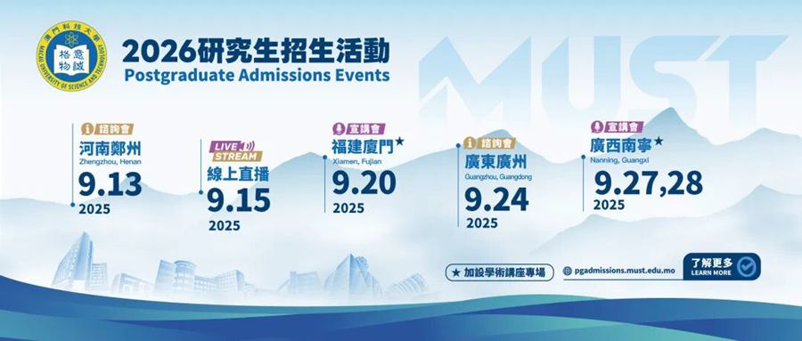 【招生】4城6場!澳科大研究生招生九月活動預告