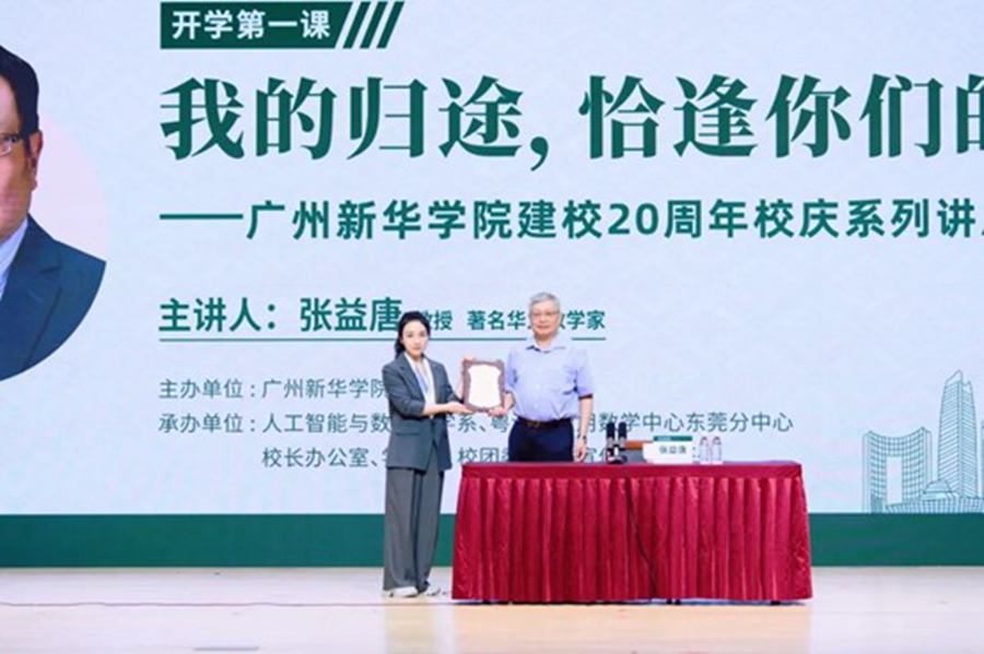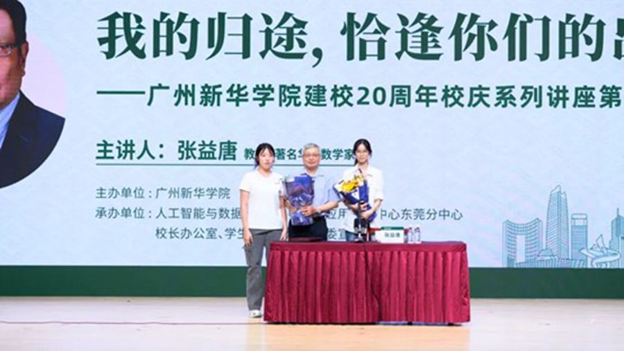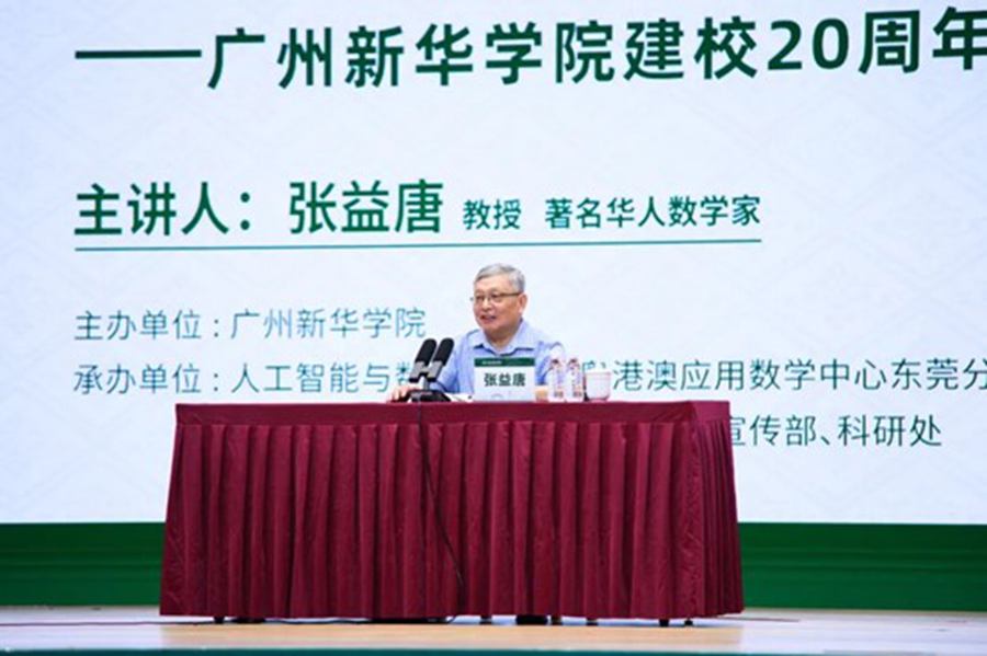 9月15日,在广州新华学院开学典礼暨军训动员大会结束之后,世界著名华人数学家、现任中山大学香港高等研究院首席科学家张益唐教授做客广州新华学院 “学者讲坛”,为全体新生带来了一场题为“我的归途,恰逢你们的出发”的专题讲座,深情分享了自己的人生经历与学术感悟,以“归途”呼应青年一代的“出发”。适逢学校建校20周年,本次讲座作为校庆系列学术活动的首讲,在师生热切的期待中拉开帷幕。