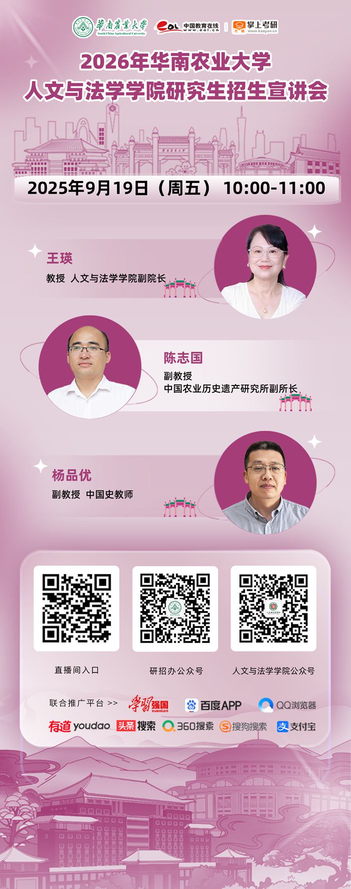 9月19日(周五)上午10:00,华南农业大学人文与法学学院2026年研究生招生线上宣讲会精彩将临!