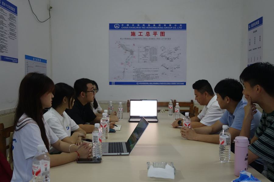 从规划走向实践,团队进一步深入生态清洁小流域建设工程的施工现场。在这里,实践团与鹤城镇相关领导以及中铁四局项目经理等一线负责人进行了面对面交流。在详细了解施工进展、试验段建设情况与实际需求后,团队针对施工方在河坡治理技术等方面遇到的瓶颈,为施工单位提供了多项专业解答与可行性建议,以科技力量为项目顺利推进扫清障碍。