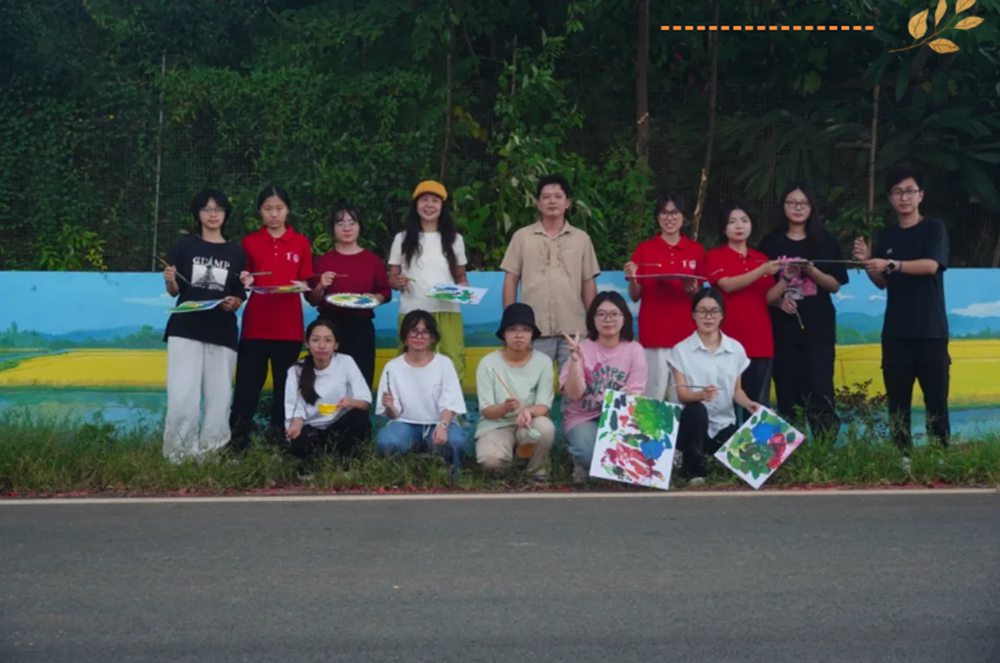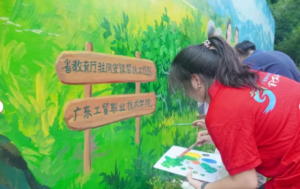 绿水青山为卷,青春热忱作笔。为积极响应乡村振兴战略,推动文化传播与产业深度融合,广东工贸职业技术学院“青绿华彩”突击队在张幼晖院长的带领下,奔赴河源市凤安镇佛岭村,开展了为期十天的暑期社会实践。团队立足艺术设计专业优势,以壁画创作与文创产品开发为抓手,助力乡村文化焕新与产业提升。