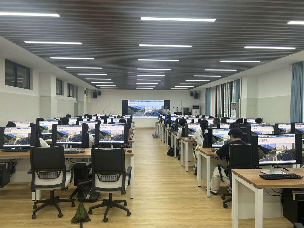 《市政道路工程数字化施工》课程“实体课堂+虚拟工坊+产业孪生空间”教学现场