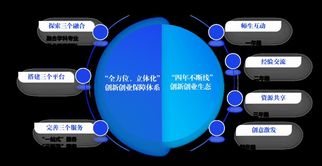 服务平台:注入“强心剂”,优化培育生态。提供“一站式”服务,为学生提供从“兴趣探索到成果产出”的全流程指导;开展“上门式”培育,深入实验室挖掘优质项目,组建A类赛事“金种子库”;举办科创之星评选等生涯月活动,打造贯穿学生成长全周期的赋能体系,全年开展双创服务活动60余场。