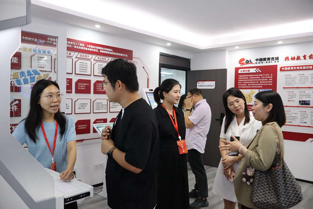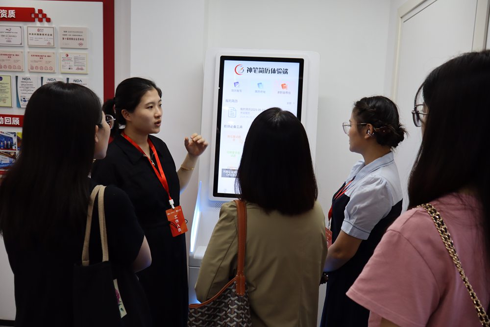 会后,与会代表参观了中国教育在线AI就业一体化展厅,亲身体验体验AI面试舱、智慧就业一体机、简历打印一体机等智能设备的智能测评、简历优化、模拟面试等方面的功能。该平台依托大数据与人工智能技术,实现学生端、教师端、评审端高效协同。