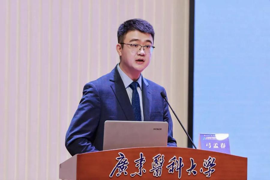 神州医疗科技股份有限公司总裁、广东医科大学多模态数据融合应用实验室主任弓孟春博士解读了《AI医学院的行业赋能及产业转化》,针对不同群体的差异化需求,平台提供精准化服务:为在校学生打造覆盖 “入学 - 教学 - 实习 - 毕业” 的一站式 AI 学习支持体系;为医护人员提供终身学习、规范化培训、职业资格考试等赋能服务;为普通用户开放智能问诊、健康评估、医学科普、名家资源推送等功能,推动优质医疗资源普惠共享。