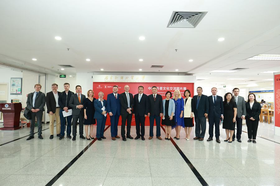 9月22日,为庆祝中国与丹麦建交75周年,推动中丹文化交流,“中国-丹麦文化交流图片展”揭幕仪式在广东外语外贸大学图书馆举行。本次图片展由广东外语外贸大学、丹麦王国驻广州总领事馆和广东国际战略研究院共同发起,共展出11件珍贵影印资料,生动回溯了中丹两国长达350多年的文化交流史,对进一步巩固中丹合作成果和加强文化往来具有重要意义。来自丹麦、比利时、波兰、意大利、德国、希腊、葡萄牙、荷兰、西班牙和法国等欧盟十国的驻穗总领事和副总领事与广东外语外贸大学师生共同参加了图片展的开幕式。广东外语外贸大学校长闫相斌教授、丹麦驻广州总领事沈博(Søren Bindesbøll)先生与广东外语外贸大学原党委书记、原校长隋广军教授分别为开幕式致辞。