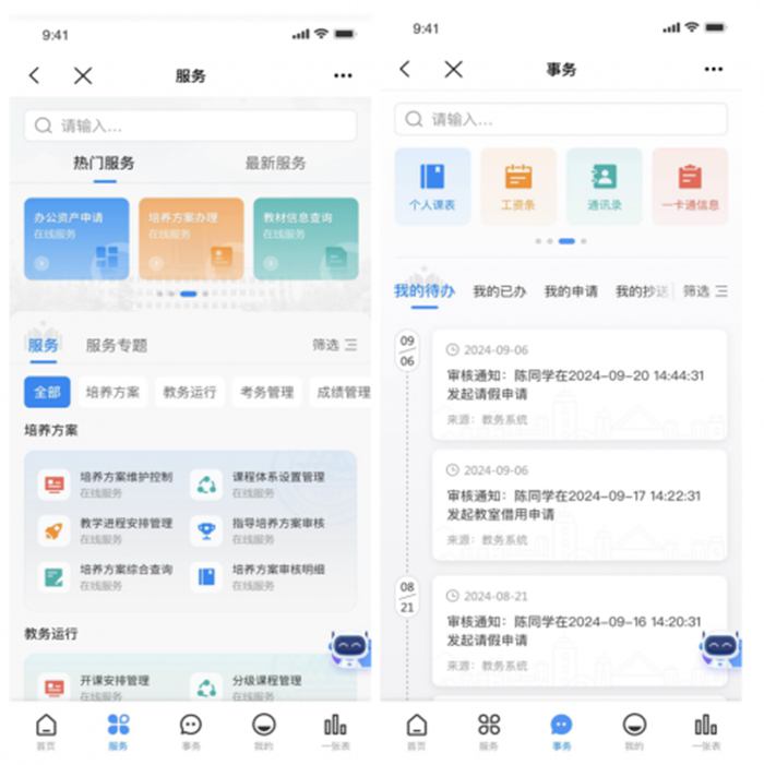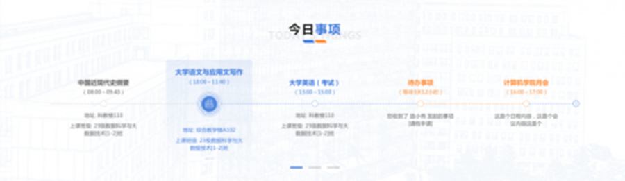 主动式服务:利用大数据分析工具,学习您的课程数据、使用习惯等,聚合呈现高度个性化的“今日事项”视图。它将分散的课程、考务、待办、日程及推荐服务智能串联,让您对一天的要事了然于胸,化被动查询为主动呈现,实现服务从“人找事”到“事找人”的智能转变。