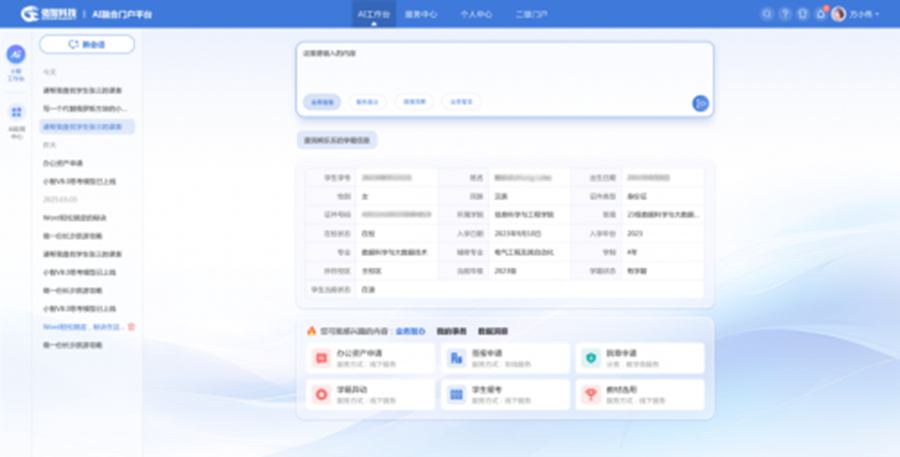 AI 融合门户全面接入DeepSeek等主流大模型,打造小智工作台,打通“找得到—办得快—更懂你”的全链路,助力高校从传统、分散的管理型门户建设模式,向聚合型、智能型综合服务平台全面转型。