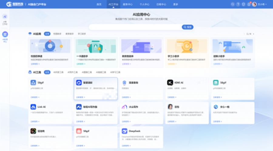 通过校内外应用的有机结合,AI应用中心让校园服务既能紧贴学校实际,又能保持与前沿技术的同步,为师生带来更加便捷、智能和个性化的服务。