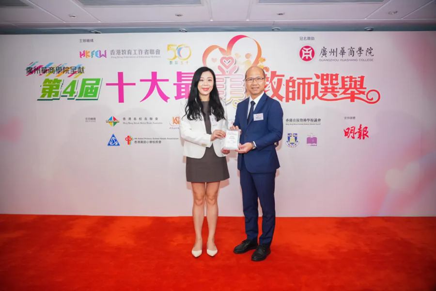 在本次典礼中,来自香港中小学、幼稚园、特殊学校及大专院校的十位优秀教师获颁殊荣。学校袁国繁常务副校长作为主礼嘉宾,为获奖教师颁授奖项,向坚守育人一线的教育工作者致以崇高敬意。十位获奖教师依次上台发表获奖感言,并分享其在教学一线的心路历程与育人点滴,场面温馨感人。