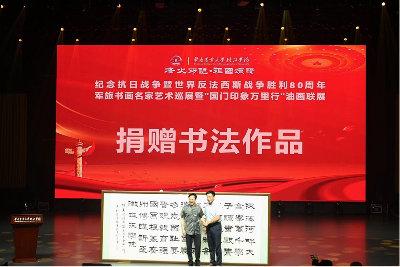 10月15日,“烽火印记·祖国颂歌——纪念抗日战争暨世界反法西斯战争胜利80周年军旅书画名家艺术巡展暨‘国门印象万里行’油画联展”在华南农业大学珠江学院(以下简称“华珠”)珠江剧院开幕。