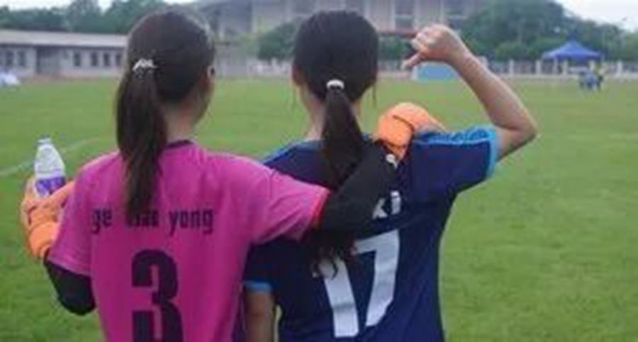 比赛中奋勇拼搏的女足与团结友谊的女足