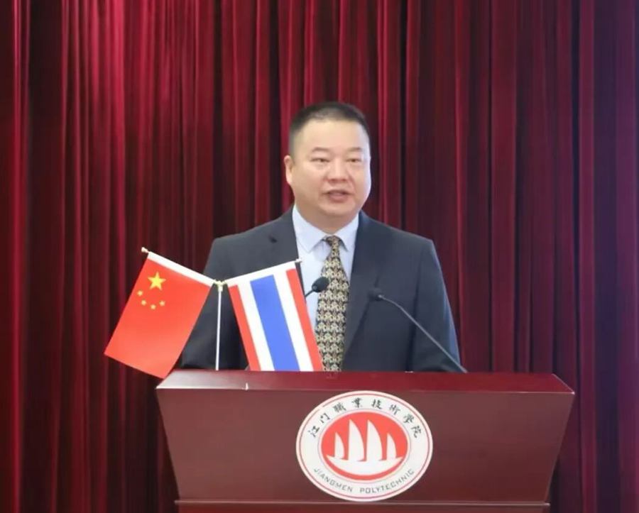 10月18日上午,江门职业技术学院(简称“江门职院”)校园迎来建校历史上首批国际学生——来自泰国巴吞他尼大学一批国际学生顺利报到并举行开班仪式。泰国巴吞他尼大学副校长(代理校长)妮缇玛·仁荣,江门职院党委副书记林愿才,党委委员、副校长蔡勇共同出席开班仪式。全体国际学生、学习培训班班主任及两校有关单位负责人参加了活动。