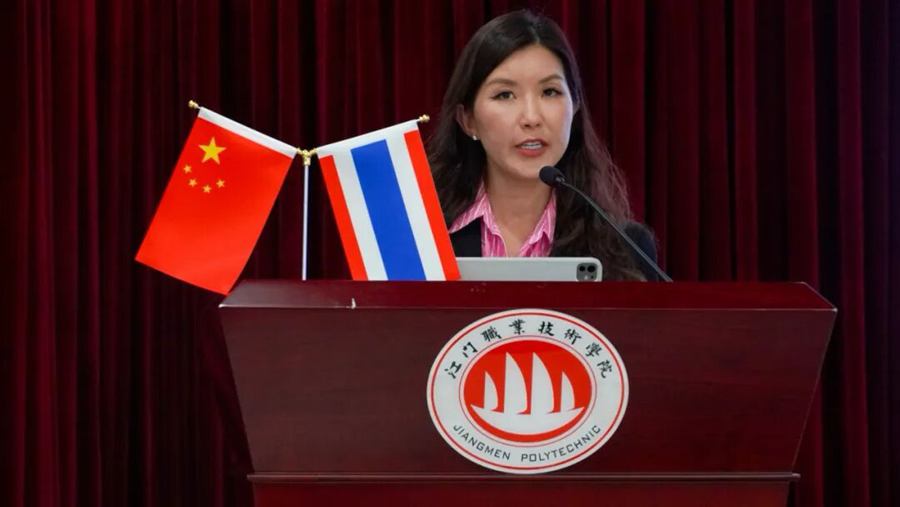 妮缇玛・仁荣副校长(代理校长)在致辞中对江门职院的精心筹备和热情接待表示感谢。她简要介绍了巴吞他尼大学办学情况,充分肯定了这次学习培训班的重要意义,同时对两校双方接下来的交流合作提出了殷切的期望。