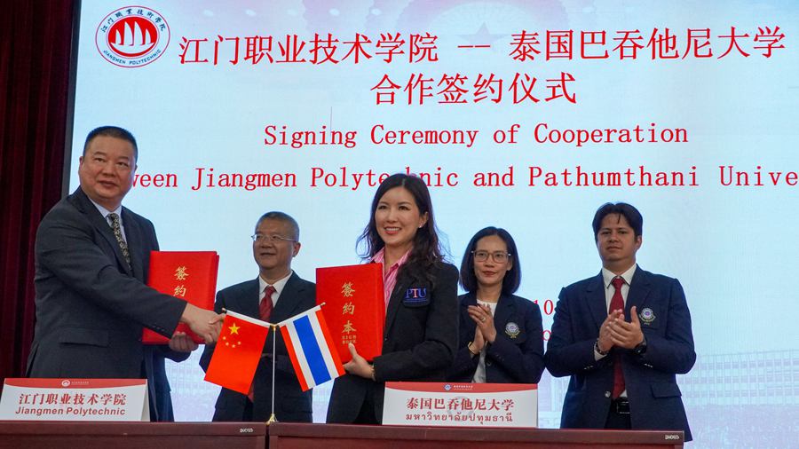 江门职院将以此次国际学生入学开班学习培训为契机,进一步深化与泰国巴吞他尼大学的交流合作,大力培养高素质国际化人才,共同推动中泰教育交流与合作迈向新高度,积极助力“一带一路”沿线教育合作与区域合作发展。