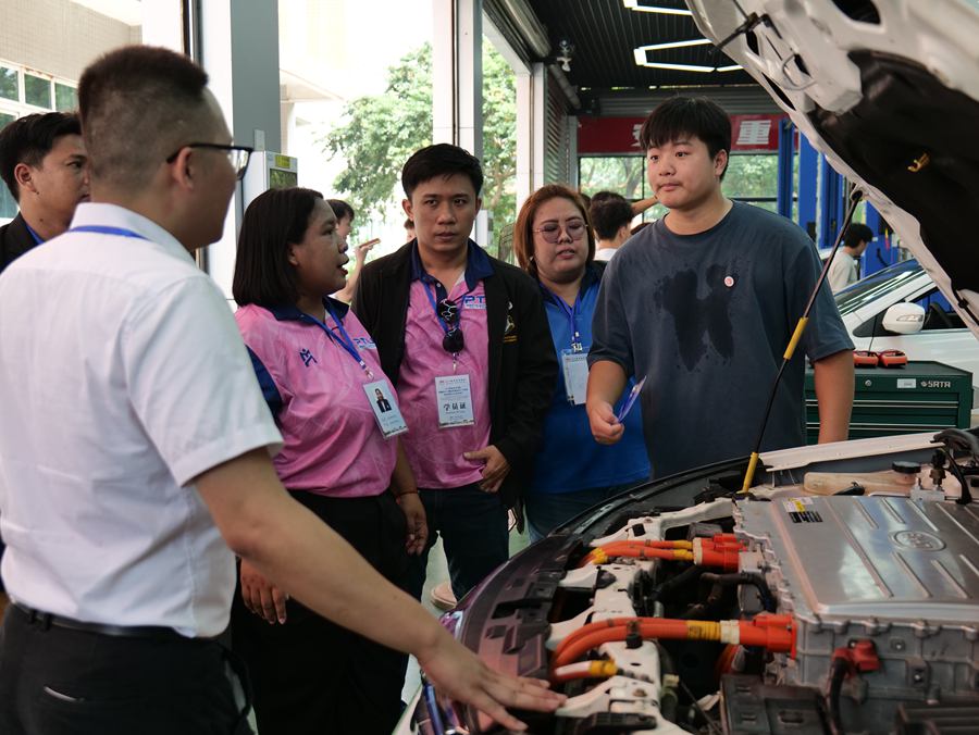 开班仪式结束后,全体学员们在志愿者的带领下,参观了学校校园及新能源汽车实训室、海目星产教评基地和工信部专精特新产业学院,进一步感受学校的校园文化与教学环境。国际学生对江门职院的校园环境和实训条件表示非常满意。