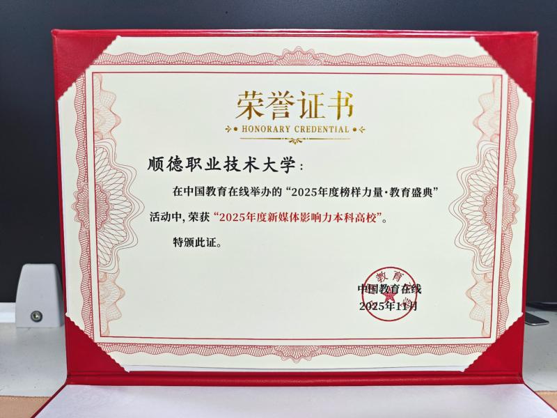 顺德职业技术大学荣获“2025年度新媒体影响力本科高校”
