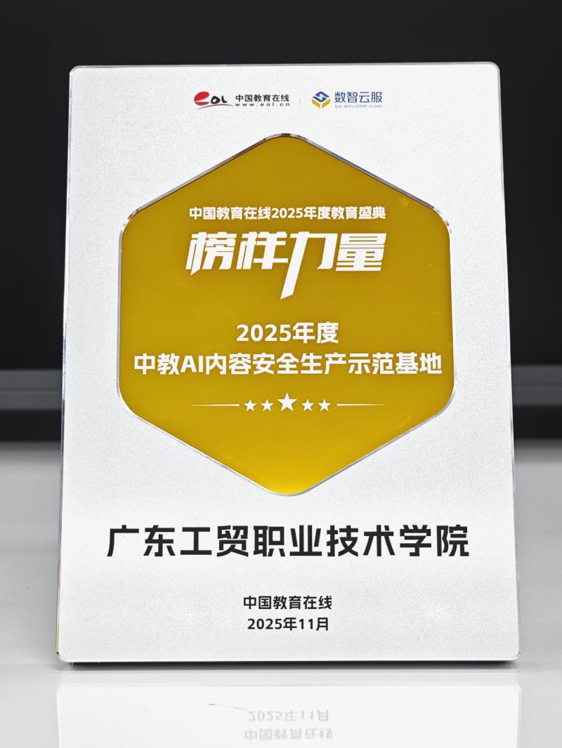广东工贸职业技术学院荣获“中教AI内容安全生产示范基地”