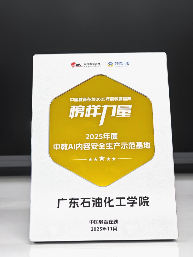 广东石油化工学院荣获“中教AI内容安全生产示范基地”