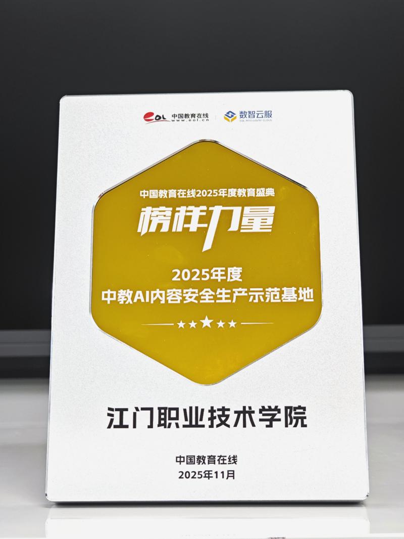 江门职业技术学院荣获“中教AI内容安全生产示范基地”