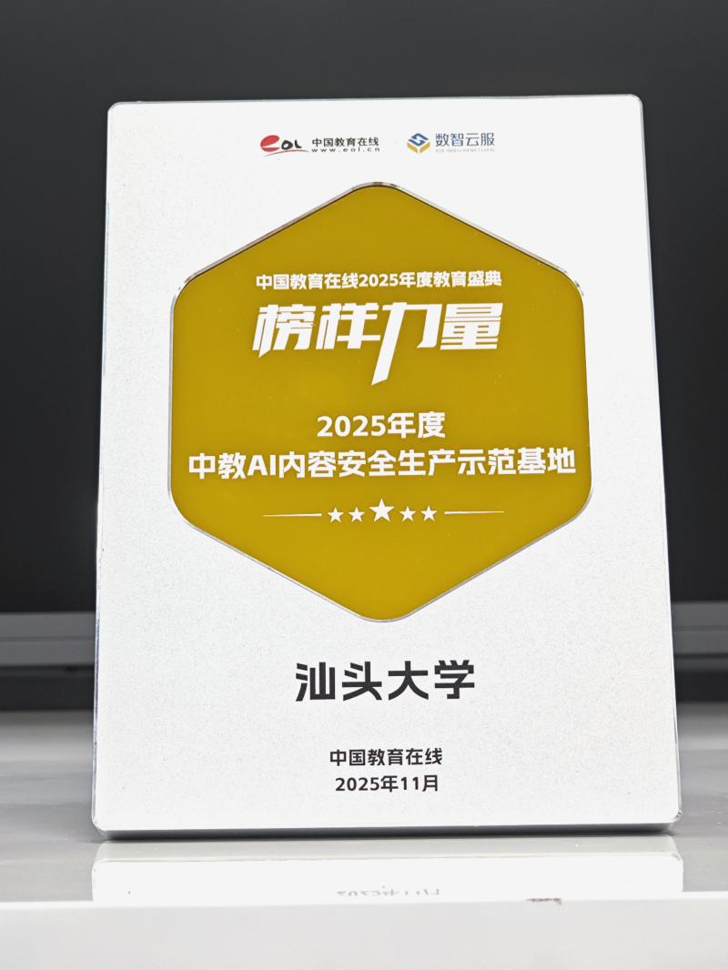 汕头大学荣获“中教AI内容安全生产示范基地”