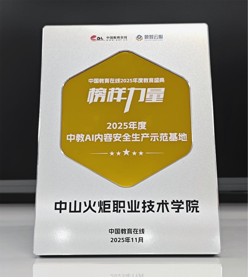 中山火炬职业技术学院荣获“中教AI内容安全生产示范基地”