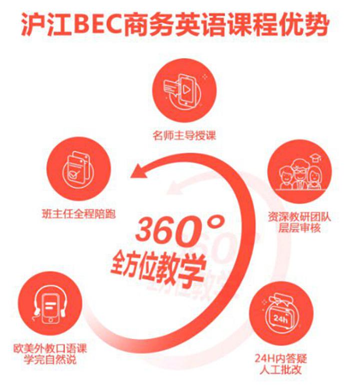 主要特点:中外教分层教学、六位一体智能工具链;体系化课程,BEC考证与实战应用结合,涵盖面试、邮件写作等